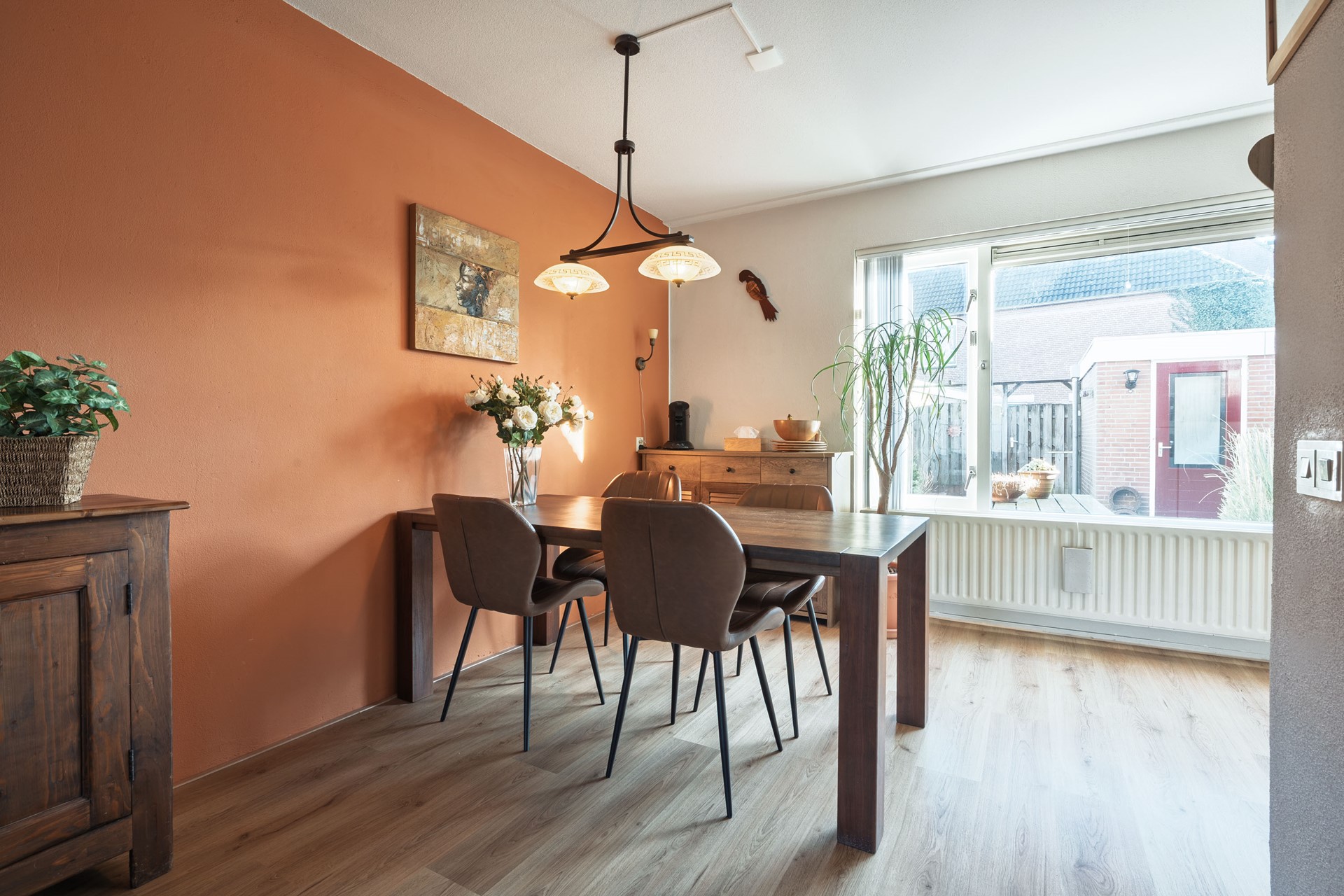 De woonmaker heeft een prettige plafondhoogte en biedt voldoende ruimte voor een comfortabele eethoek.