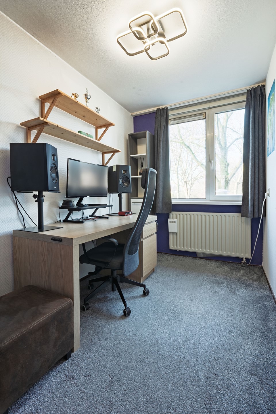 Via de vaste trap is de 2e verdieping bereikbaar. Hier bevindt zich een ruime vierde slaapkamer, goed bruikbaar als volwaardige slaapkamer, werkkamer of logeerruimte. Daarnaast is vanuit deze slaapkamer de praktische vliering met extra bergruimte bereikbaar.