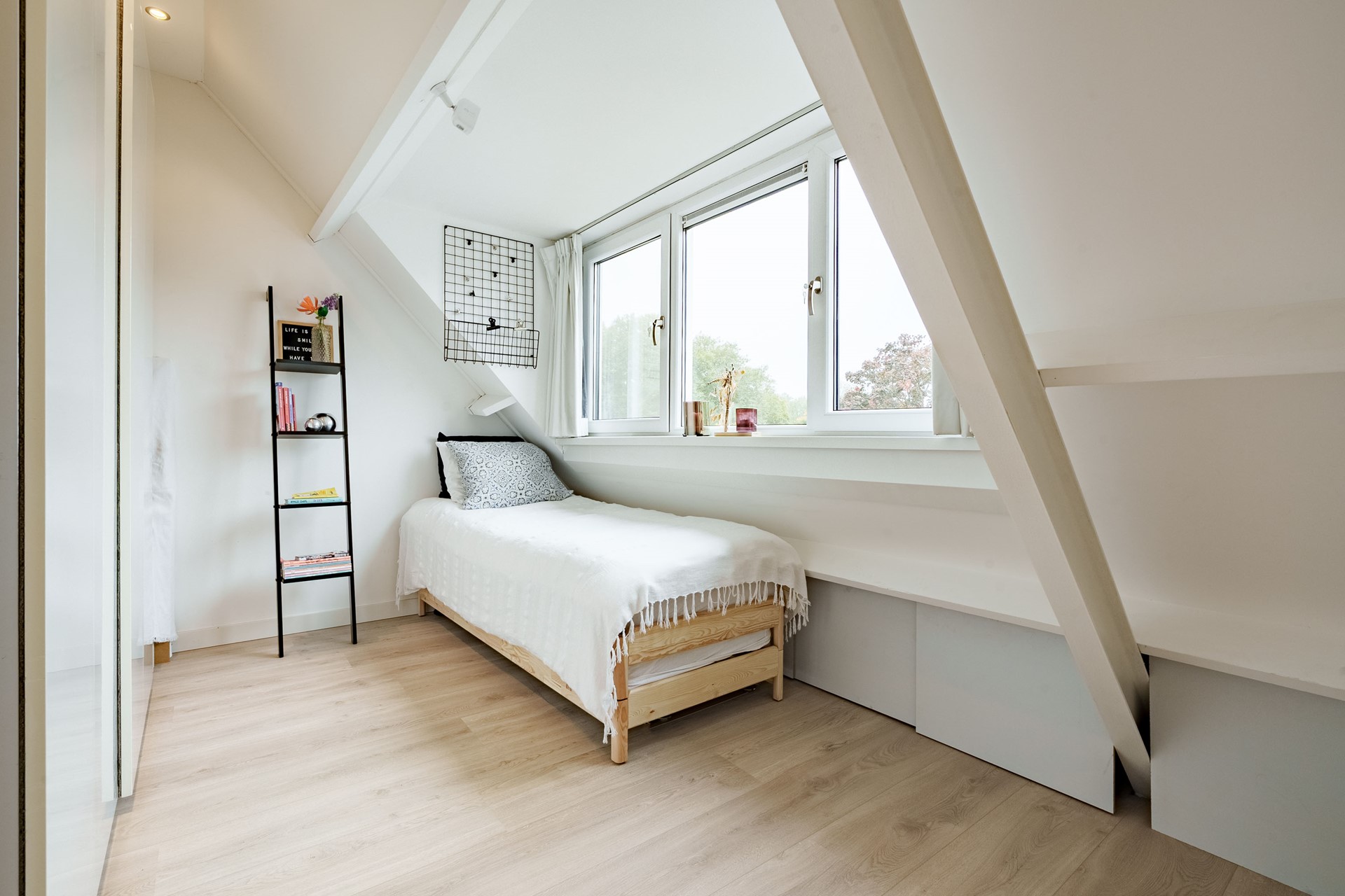De zolderverdieping is optimaal benut met twee slaapkamers, beide voorzien van een dakkapel, wat zorgt voor extra licht en ruimte. Tevens vind je hier de cv-installatie (ATAG, 2023) en de aansluiting voor de wasmachine.