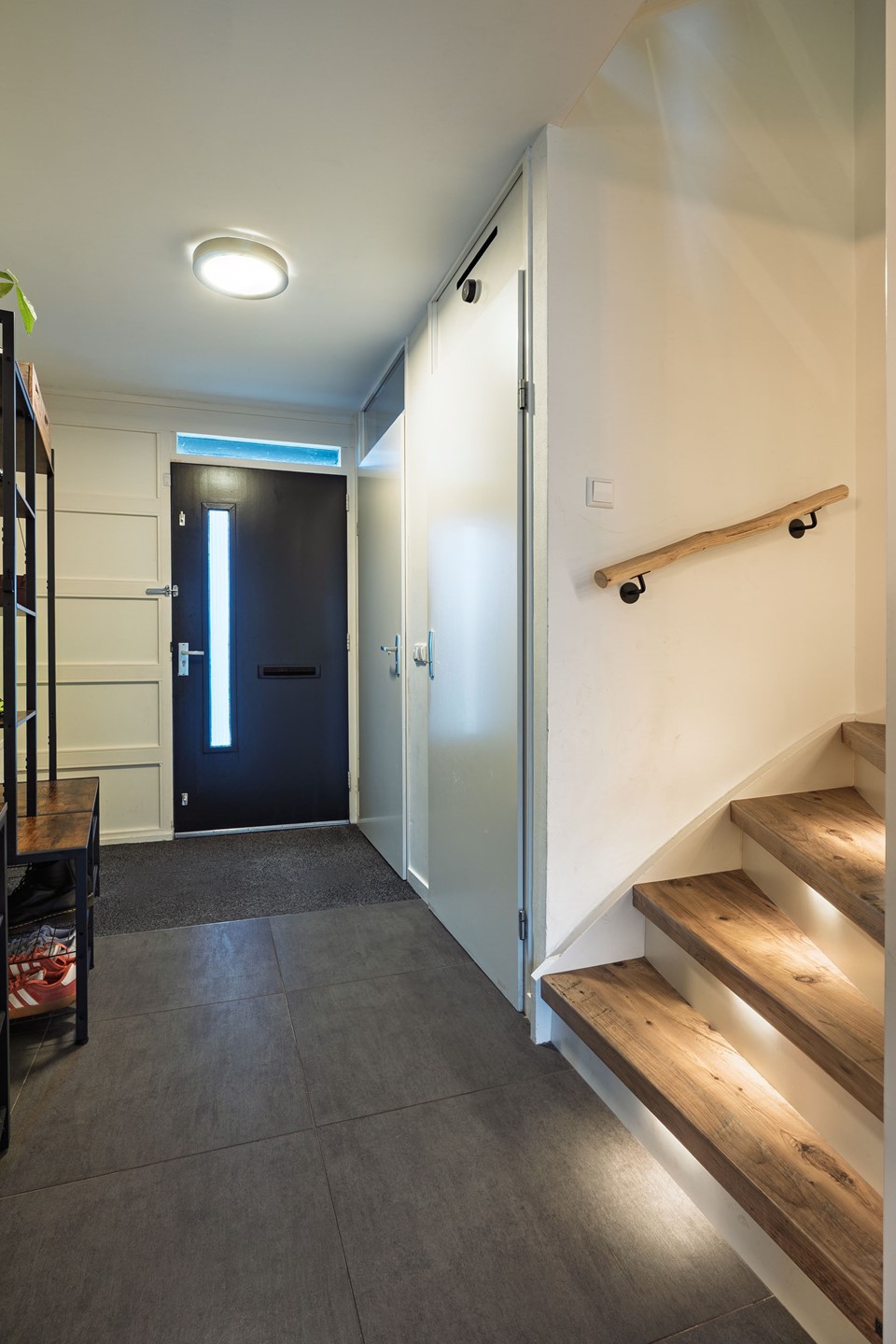 Je komt binnen in de hal met toilet en meterkast. Vanuit hier loop je door naar de ruime en lichte woonkamer, een fijne plek waar je moeiteloos een gezellige zithoek en een grote eettafel kwijt kunt.