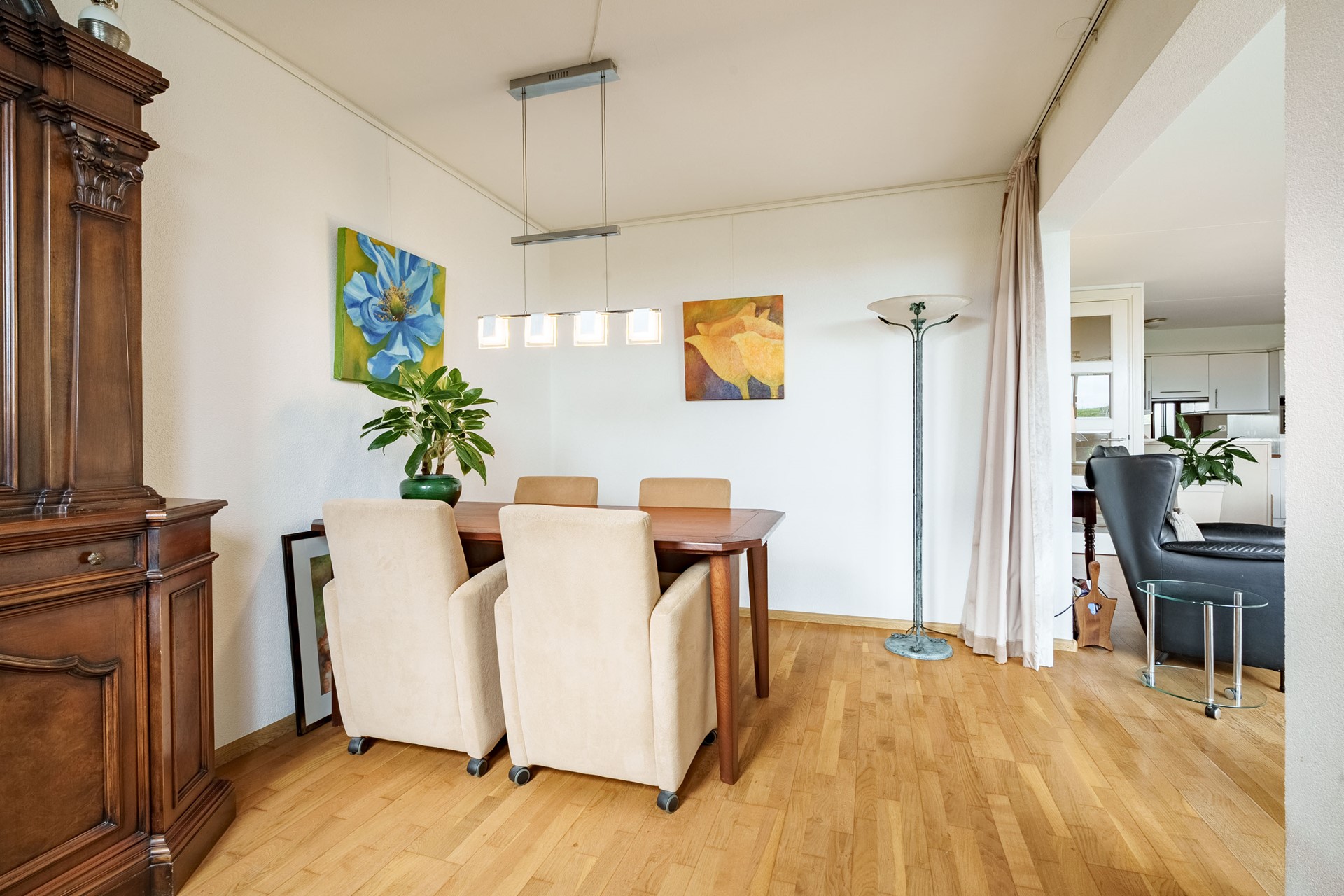 De woning beschikt over een ruime en lichte woonkamer met een plafondhoogte van circa 2,46 meter. Dankzij de royale afmetingen is er volop ruimte voor een comfortabele zithoek. De woonkamer staat in directe verbinding met de eetkamer, die zich aan de achterzijde van de woning bevindt en zich uitstekend leent voor een grote eettafel. De eetkamer heeft prettig daglicht en een logische aansluiting op het leefgedeelte.