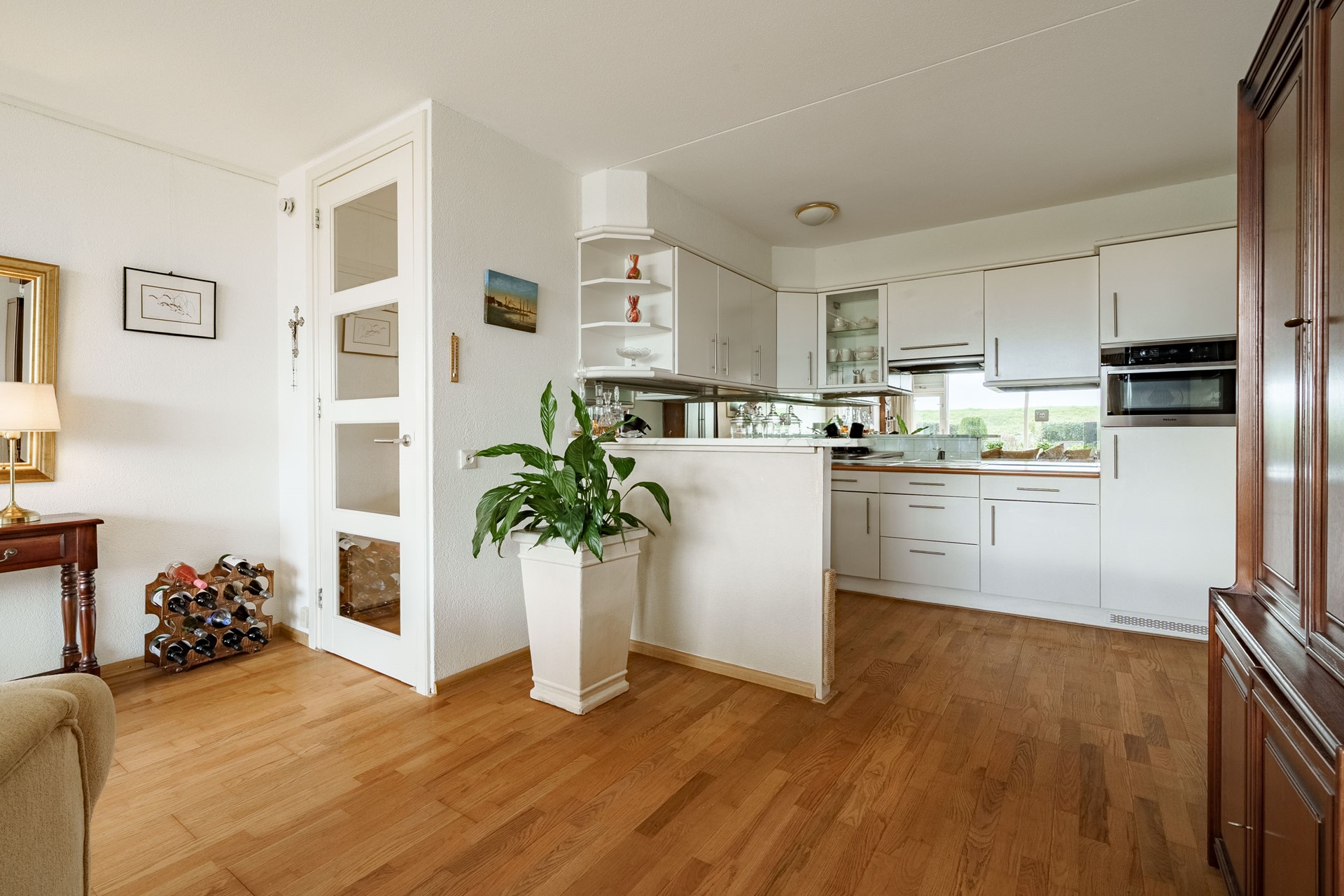 De keuken is centraal in de woning gelegen en functioneel ingericht, met voldoende werk- en kastruimte. Vanuit de keuken is er direct contact met de woonkamer, wat zorgt voor een open en aangename leefomgeving.