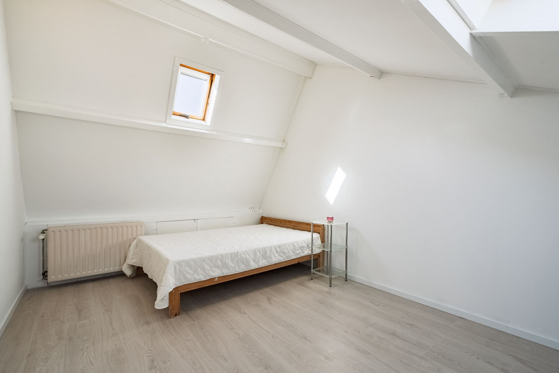 Dankzij het Velux dakraam met HR++ glas is deze verdieping voorzien van prettig daglicht. Via de voorzolder is de ruime 4e slaapkamer bereikbaar. Deze slaapkamer heeft twee dakramen en extra bergruimte achter de knieschotten.